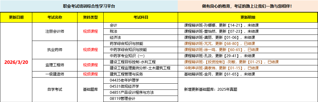 职业考试培训综合性学习平台,做有良心的教育,考证路上让我们一路与您相伴!