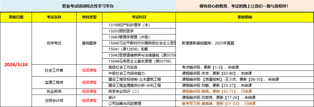 职业考试培训综合性学习平台,做有良心的教育,考证路上让我们一路与您相伴!